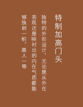 | 秉承中國“藏風聚福”的傳統(tǒng)理念,研發(fā)出特殊的設(shè)計工藝,無需更改門洞尺寸,加高門框處理,添財納吉祥、五福入豪門 |